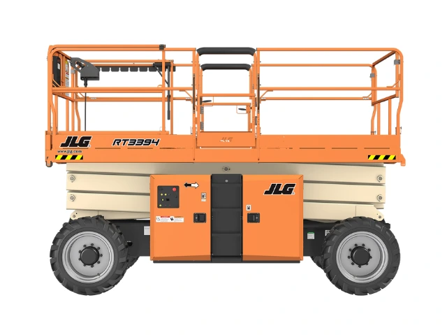 La JLG 3394RT alcanza una altura de trabajo de 12 metros con una capacidad de carga de 1,020 kg, lo que la convierte en una plataforma de tijera ideal para proyectos de construcción, montaje estructural o instalaciones a gran escala.