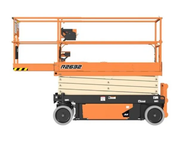 La JLG R2632 es una plataforma de tijera eléctrica con altura máxima de trabajo de 9.92 metros y capacidad de carga de 230 kg, diseñada para espacios interiores. Su tamaño compacto y neumáticos no marcantes la hacen adecuada para ambientes industriales, comerciales o institucionales.