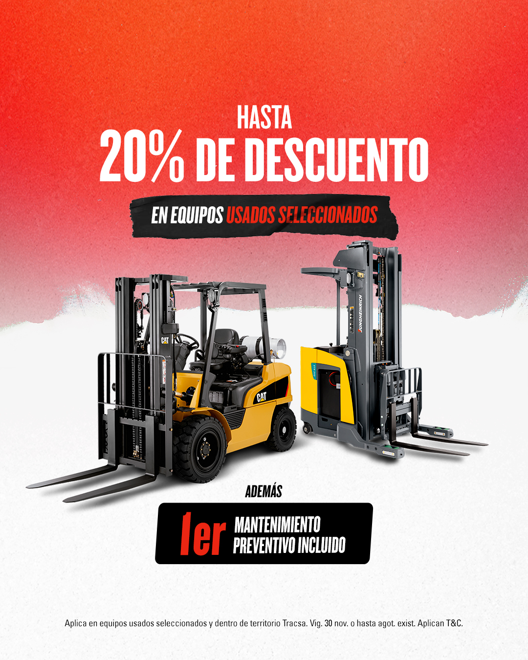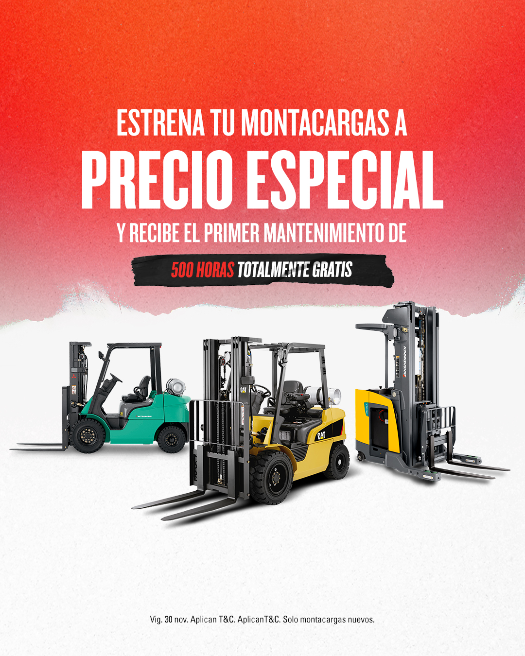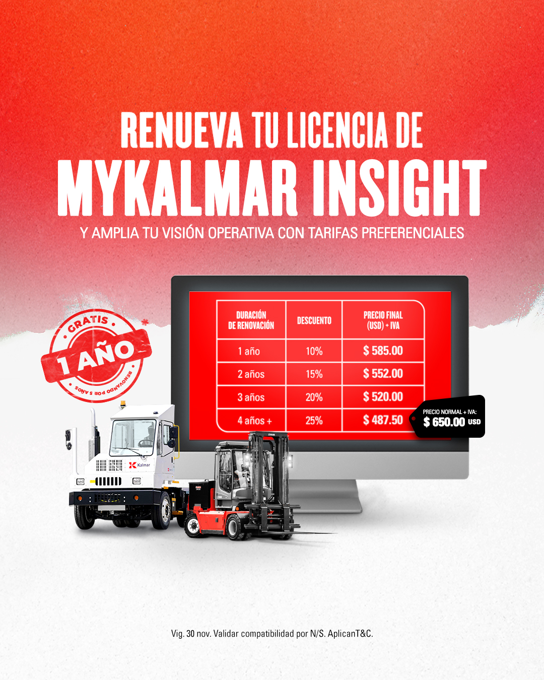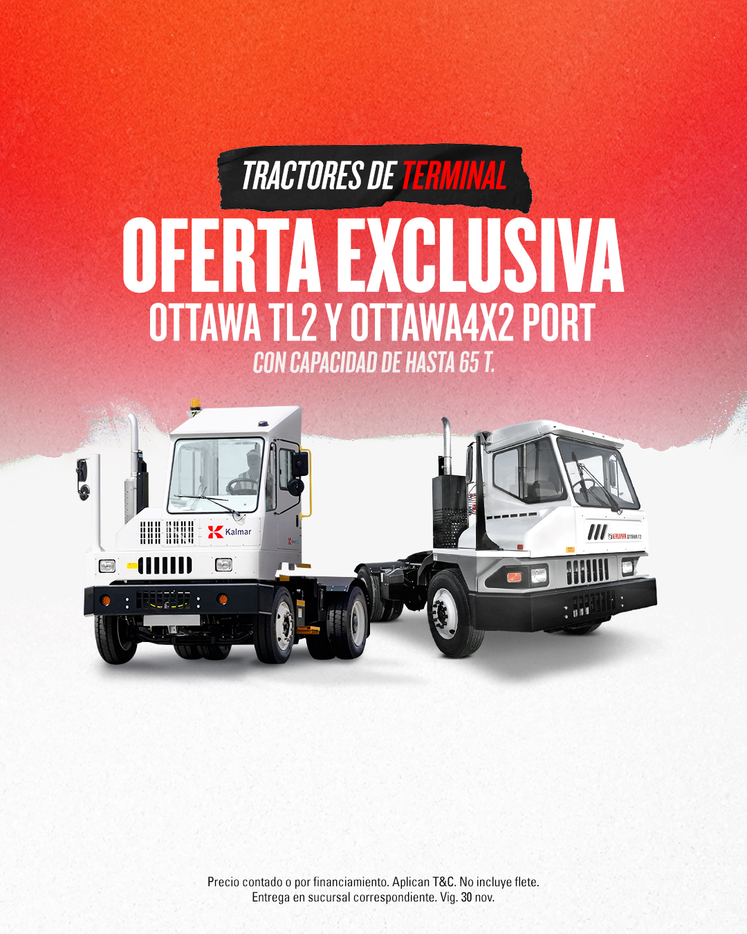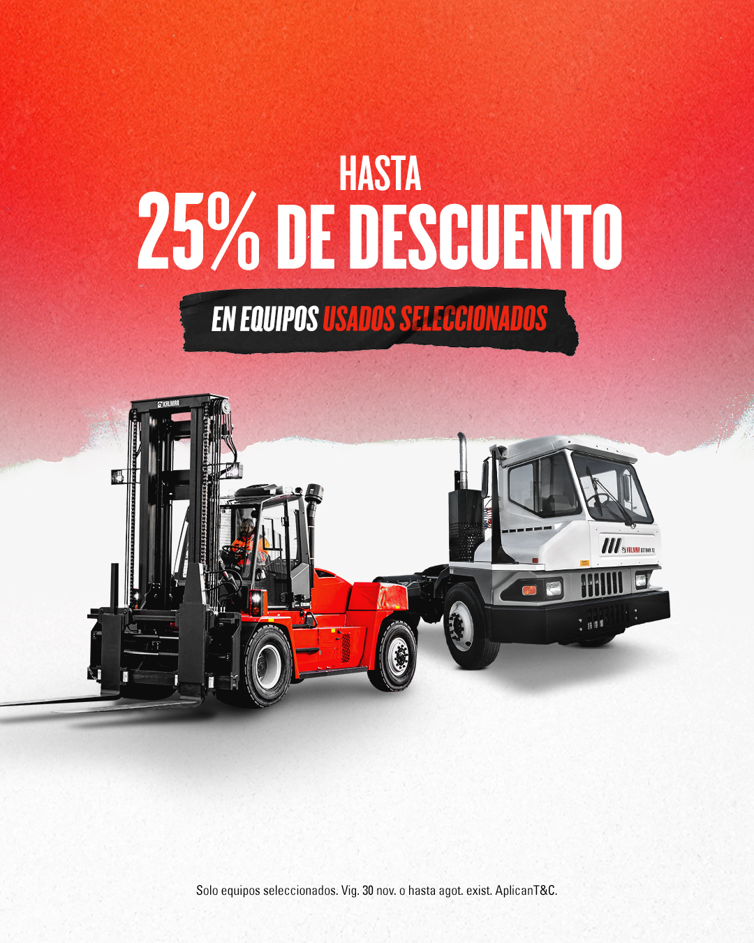Aún puedes acceder a precios especiales en montacargas Kalmar, tractores Ottawa y reach stackers, además de descuentos en refacciones como asientos, patines, tanques, baterías y horquillas.