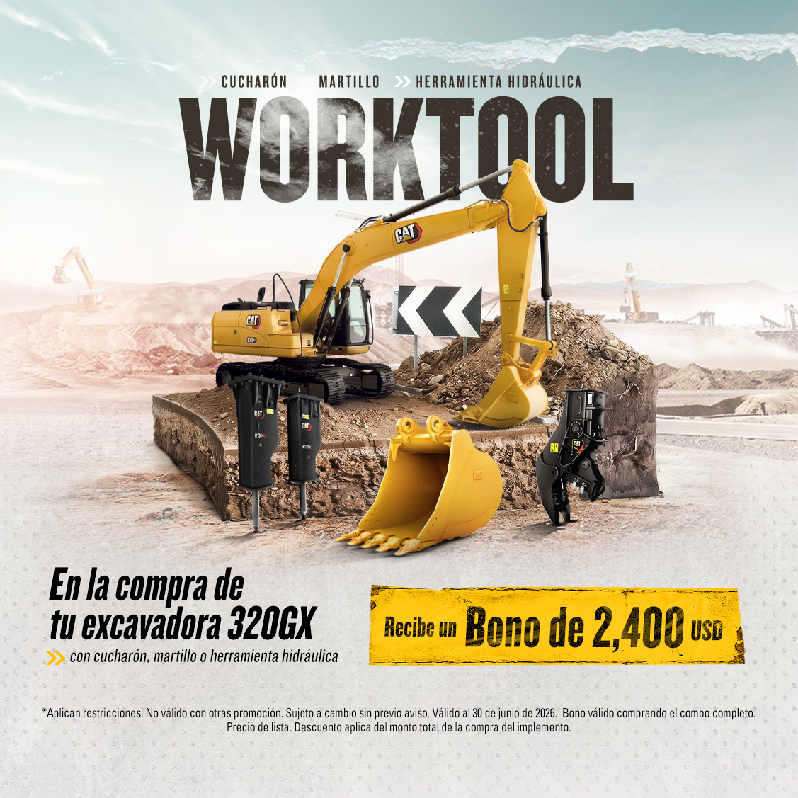 Al invertir en tu nueva excavadora Caterpillar equipada con cucharón, martillo o herramienta hidráulica, recibes un bono en efectivo que hace la diferencia.